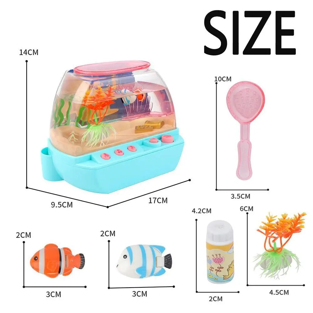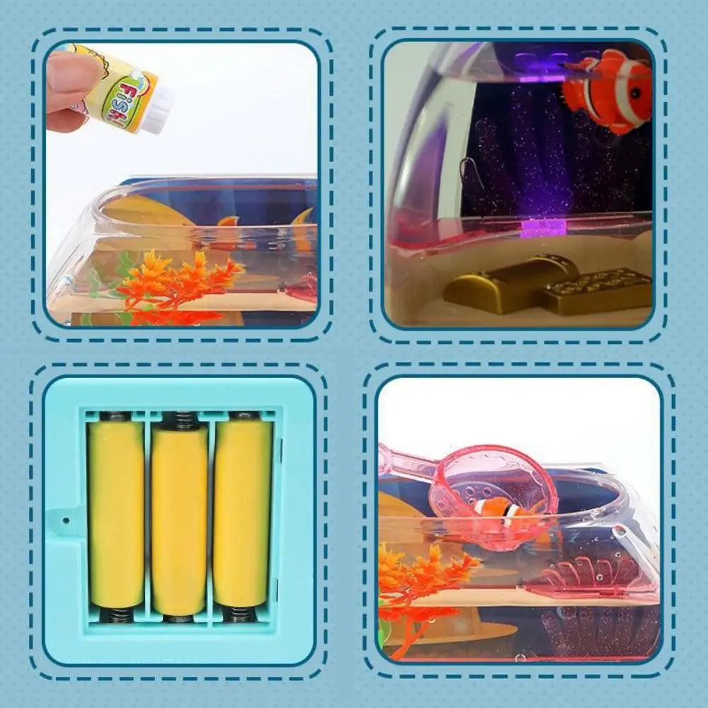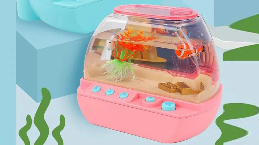 MULTIFUNCTIONAL: The fish tank has several buttons to listen stories, nursery, ancient poems, as well as lights and music